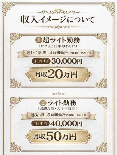 3/5(木)本日体験全額バック手取り&入店1年以上女性の手取り